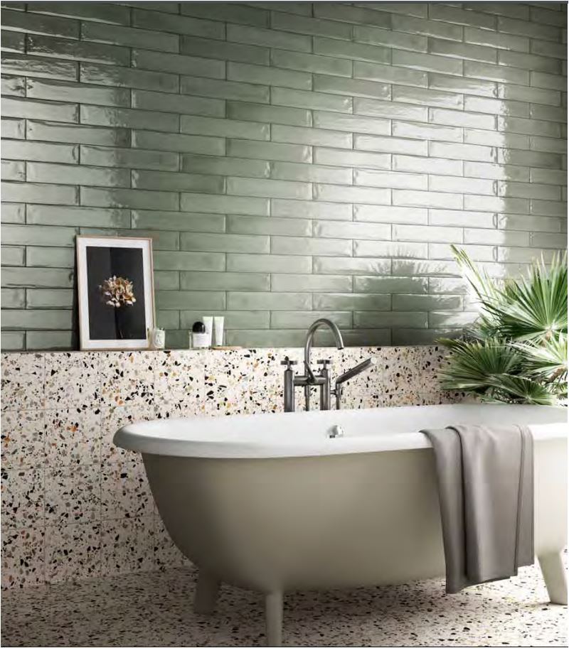 With a vintage slant on the classic subway this shiny wall tile creates a desired new-authentic look.